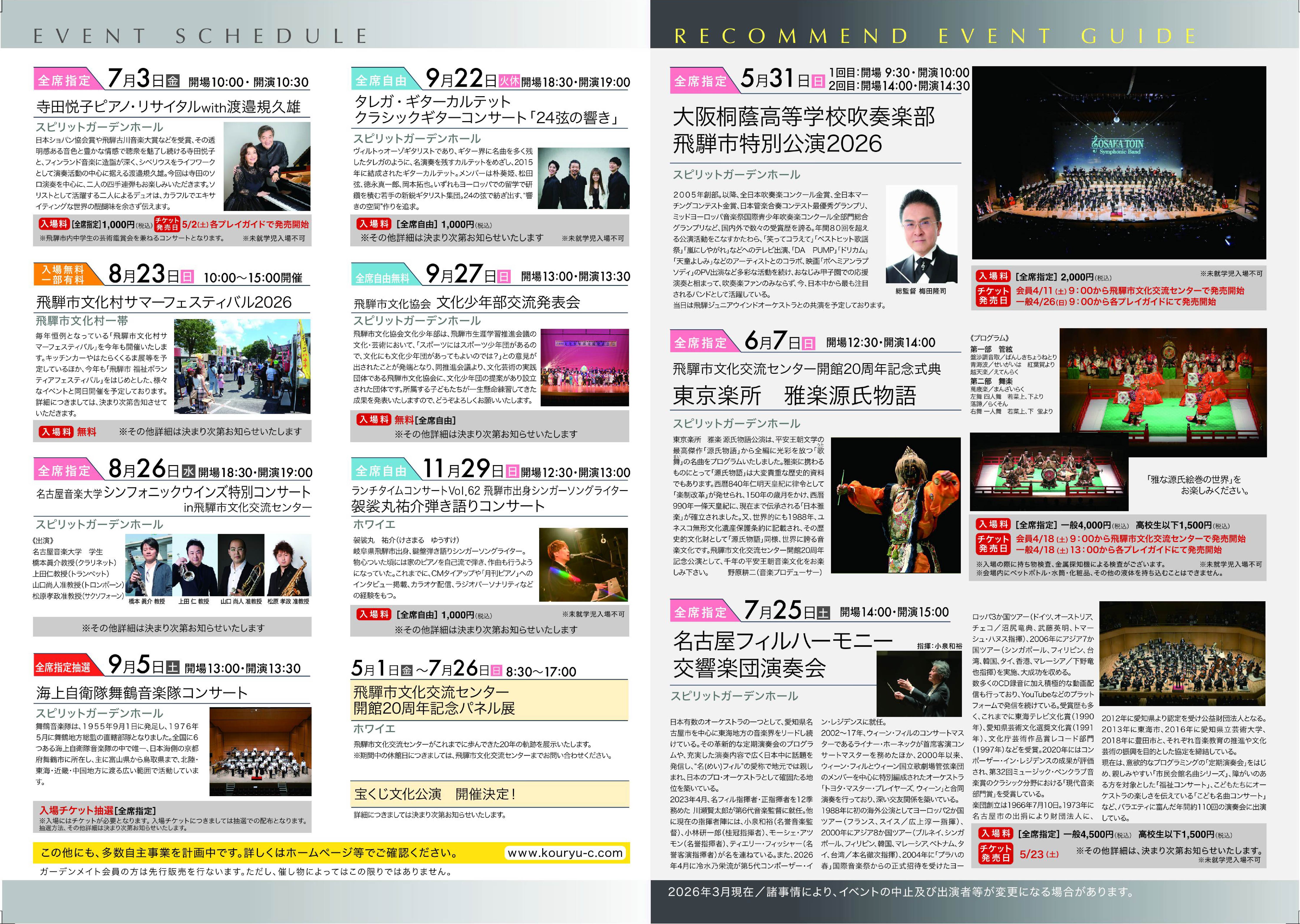 各イベントの詳細につきましては、飛騨市文化交流センターまでお問い合わせください。