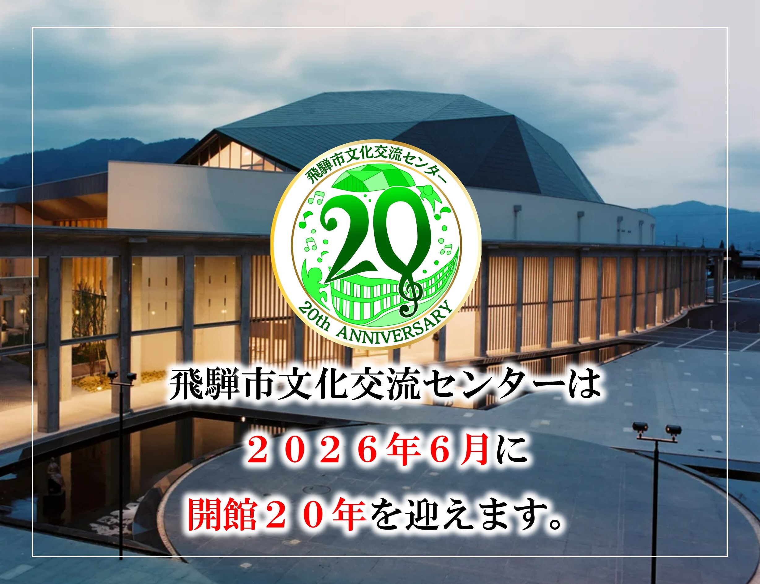 飛騨市文化交流センターは、おかげさまで開館20周年を迎えます。